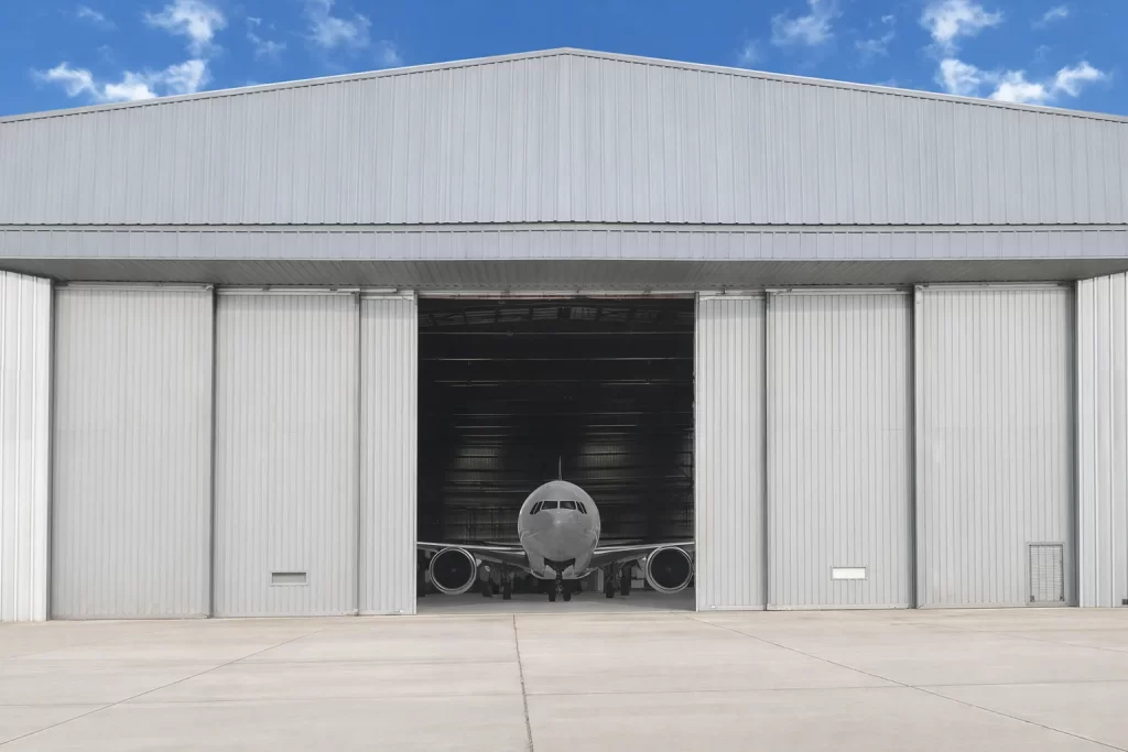 • Manufacturing: Hangar doors are highly customized and manufactured from standardized components based on specific site requirements, including size, wind load criteria, and desired insulation.
