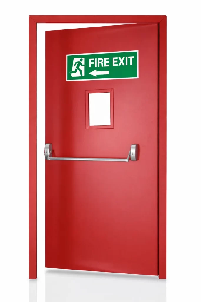 The doors are equipped with advanced intumescent and smoke-control seals that expand when exposed to high temperatures, effectively sealing perimeter gaps to prevent the passage of flames, hot gases, and smoke.