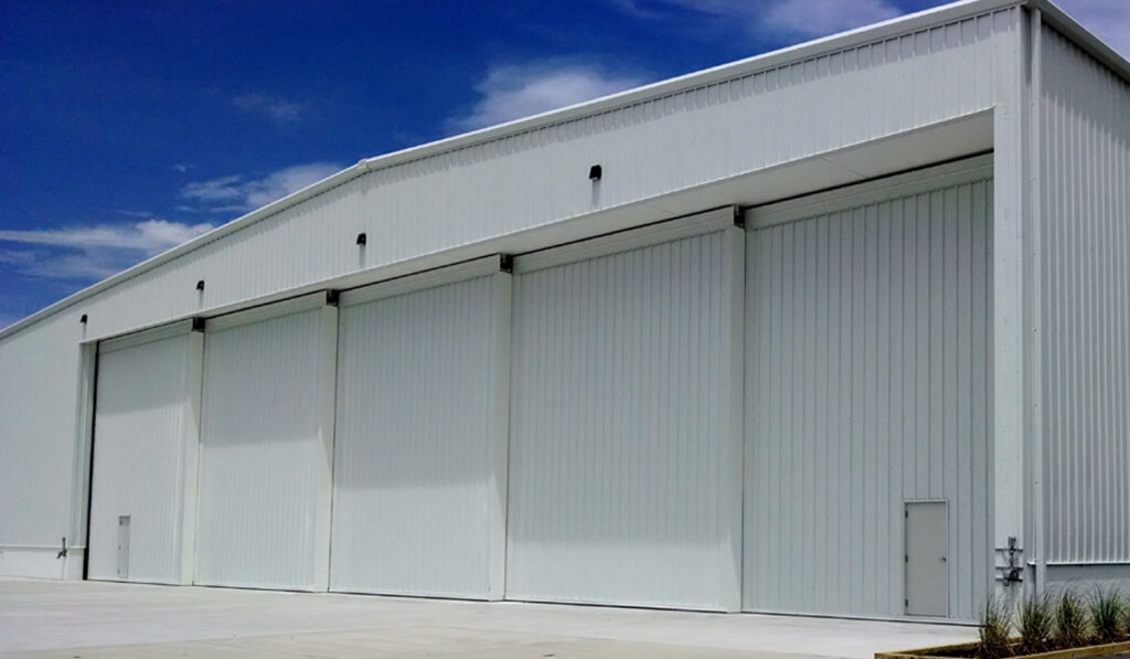 Manufactured using advanced fabrication and precision welding techniques, the doors feature heavy-duty structural steel frames, reinforced panels, and high-load bearing roller assemblies designed to minimize deflection and ensure long-term structural integrity under frequent operation. The number and arrangement of door leaves are engineered based on the required clear opening, wind-load conditions, and available installation space, delivering a fully customized, high-performance access solution for demanding industrial environments.